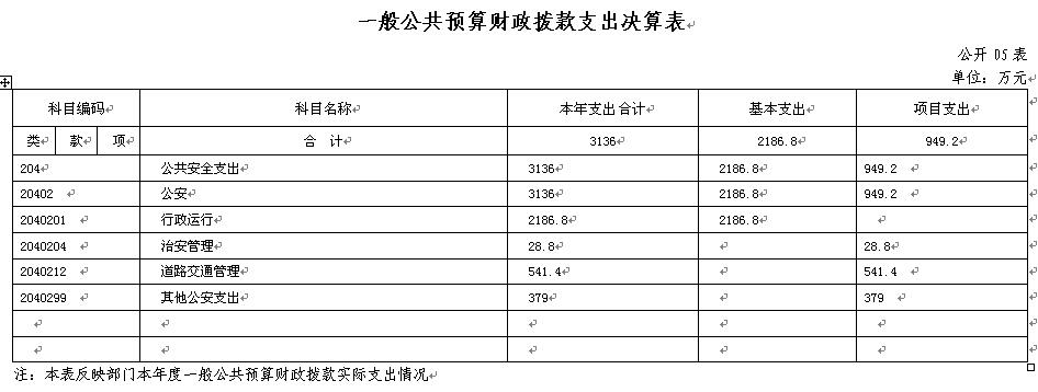 1、一般公共服務(wù)(公共安全支出)支出3136萬元,主要用于行政運(yùn)行、道路交通管理。