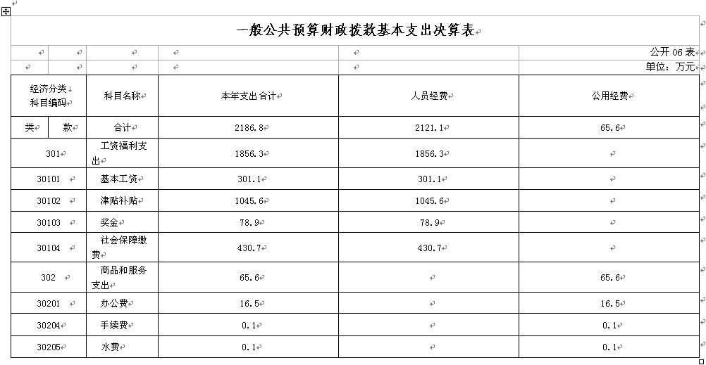 2015年一般公共預(yù)算財政撥款基本支出決算2186.8萬元,包括人員經(jīng)費和公用經(jīng)費,支出具體情況如下:
