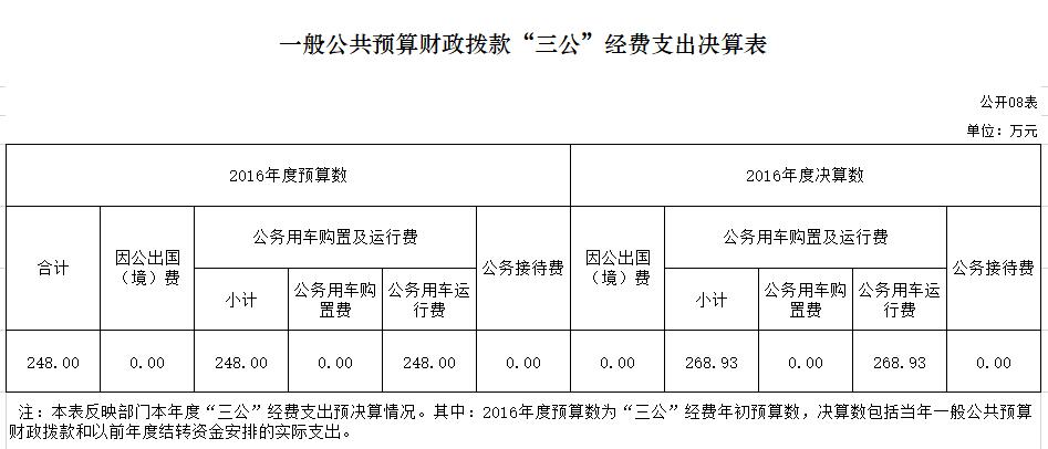 十四、“三公”經費:指省級部門用財政撥款安排的因公出國(境)費、公務用車購置及運行費和公務接待費。其中,因公出國(境)費反映單位公務出國(境)的差旅費、伙食補助費、雜費、培訓費等支出;公務用車購置及運行費反映單位公務用車購置費(含車輛購置稅)及租用費、燃料費、維修費、過路過橋費、保險費等支出;公務接待費反映單位按規定開支的各類公務接待(含外賓接待)支出。