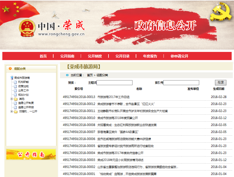 2017年,旅游局認真貫徹落實《條例》和《辦法》,政府信息公開工作取得顯著成效。完善了工作網絡,健全了運行機制,保證了政府信息公開效果。主要通過榮成市政府信息公開網站和本單位網站以及新聞媒體、公告欄等多種形式,及時、全面、有效地主動公開政府信息,積極受理和回復向我單位提出的政府信息公開申請,為廣大公眾提供了較好的政府信息公開服務。