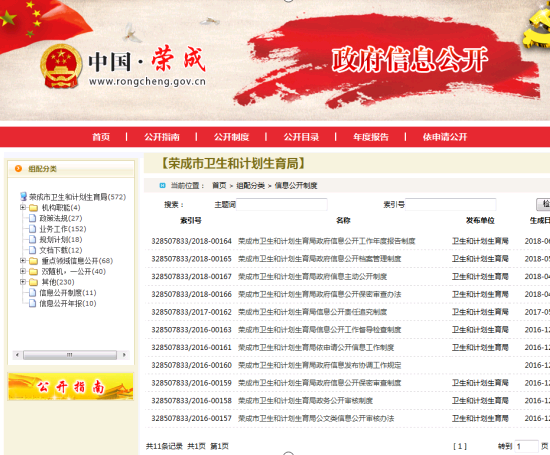 2017年,榮成市衛生和計劃生育局未接到居民提交的政府信息公開申請。