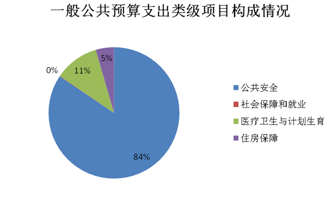 2018年一般公共預算支出預算為14576.5萬元,比上年預算數增長9.19%,主要原因是項目支出增加。其中:公共安全(類)支出12313萬元,占84.47%;社會保障和就業(類)支出14.9萬元,占0.1%;醫療衛生與計劃生育(類)支出1595萬元,占10.94%;住房保障(類)支出653.6萬元,占4.48%。