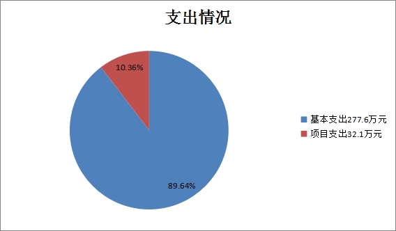 2018年支出總計309.7萬元(其中本年支出309.7萬元), 比2017年預算數增加48萬元,主要原因是2018年預算中包括上年度精神文明獎及增加了外出考察和涉企政策匯編費用。其中基本支出277.6萬元,占89.64%;項目支出32.1萬元,占10.36%。