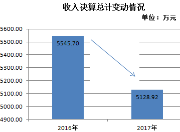 2017年度收入總計(jì)5128.92萬元。與2016年相比,收入總計(jì)減少416.78萬元,減少7.52%,主要原因是2017年部分項(xiàng)目未完工、未驗(yàn)收,項(xiàng)目資金結(jié)轉(zhuǎn)2018年。2017年度支出總計(jì)5128.92萬元。與2016年相比,支出總計(jì)減少416.78萬元,減少7.52%,主要原因是2017年部分項(xiàng)目未完工、未驗(yàn)收,項(xiàng)目資金結(jié)轉(zhuǎn)2018年支付。