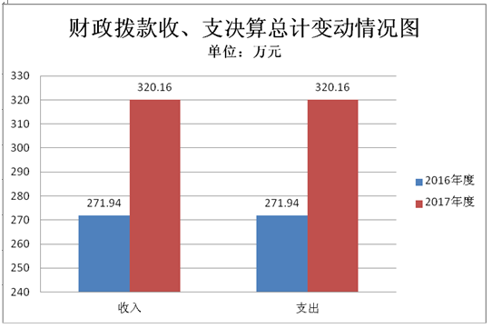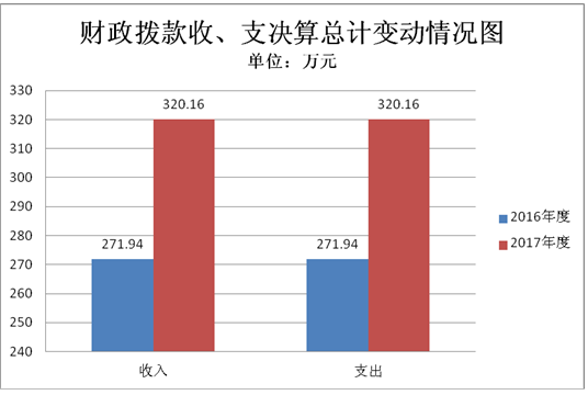 2017年度收入總計320.16萬元,支出總計320.16 萬元。與2016年相比,收、支總計各增加48.22萬元,增長17.73%。主要是人員經費增加。