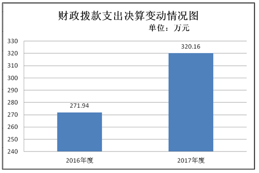 2017年度一般公共預算財政撥款支出320.16萬元,占本年支出合計的100%。與2016年相比,一般公共預算財政撥款支出增長48.22萬元,增長17.73%。主要是人員經費增加。