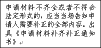 (1)屬于窗口接收的,接收人當場發現申請材料不齊全或不符合法定形式的,能當場補正的告知申請人當場補正,并予以協助。不能當場補正的,做出補齊補正通知書,列明需補正的材料內容和補正期限,以及逾期不補正作退件處理的規定。