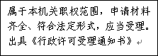 (2)經審核不符合受理條件的,窗口人員登錄行政審批服務局內網系統自動生成不予受理通知書,通知書內容要包括不予受理的理由、有權受理的其他機關的名稱、法律救濟等。
