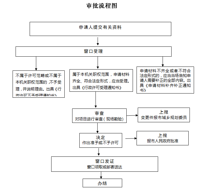 ①經審核申請材料齊全、符合法定形式,或已按要求補齊補正材料的,依法進行規劃許可批前公告,組織聽證、論證。符合受理條件的,窗口人員登錄行政審批服務局內網系統自動生成受理通知書,并隨即打印。
