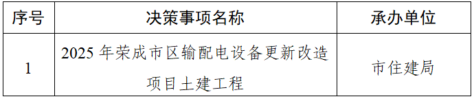 榮成市人民政府2025年度重大行政決策事項目錄