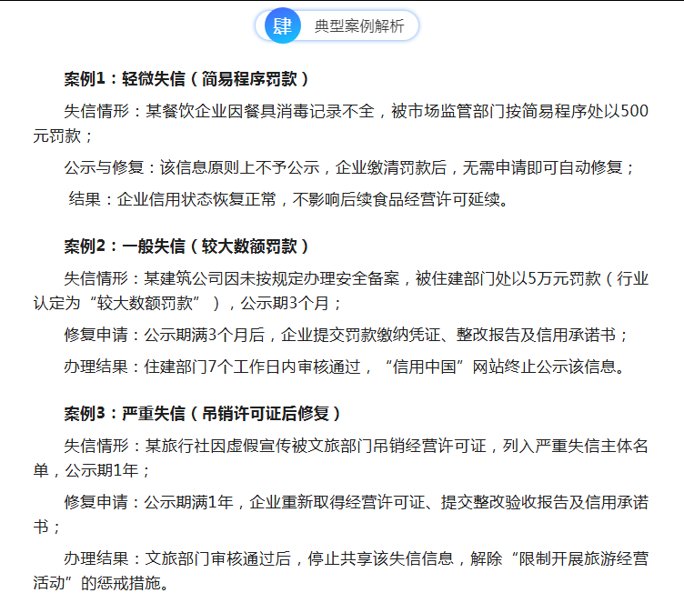 (四)行業(yè)主管部門規(guī)定的其它符合輕微失信的情形。