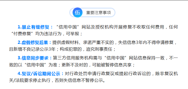 第二十五條 信用主體申請(qǐng)信用修復(fù)應(yīng)當(dāng)秉持誠(chéng)實(shí)守信原則,如有提供虛假材料、信用承諾嚴(yán)重不實(shí)或被失信信息認(rèn)定單位認(rèn)定為故意不履行承諾等行為,由失信信息認(rèn)定單位記入信用記錄,納入全國(guó)信用信息共享平臺(tái)。相關(guān)信用記錄在“信用中國(guó)”網(wǎng)站公示3年不得提前終止公示,原失信信息3年內(nèi)不得申請(qǐng)信用修復(fù);構(gòu)成犯罪的,依法追究刑事責(zé)任。