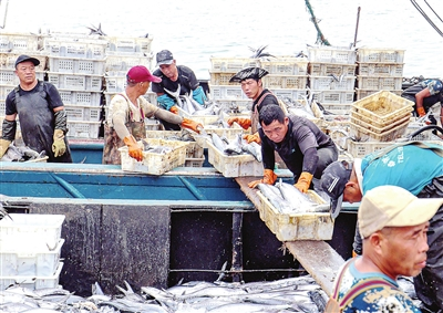 9月1日黃渤海伏季休漁結(jié)束后,出海作業(yè)的漁船紛紛歸來卸貨,山東沿海也迎來了海上漁業(yè)生產(chǎn)的繁忙期。9月5日,在石島漁港,滿載漁獲歸來的漁船陸續(xù)歸港卸魚。碼頭上,漁民們忙著分揀、裝運(yùn)各類漁獲,及時(shí)供應(yīng)市場(chǎng)。