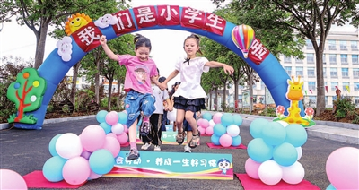 在市府新小學,學生們通過跨越寓意深刻的“七個一”成長跨欄,以嶄新姿態步入新學期。