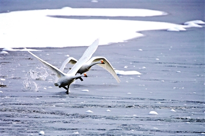 2月7日,我市迎來立春后的第一場降雪。在天鵝湖,成群的大天鵝迎著潔白春雪,在湖畔休憩、游弋、飛舞,構成一幅幅唯美生態畫卷,宛如冰雪童話世界。
