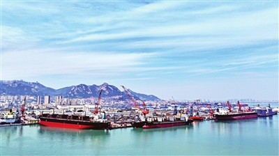 近日,在威海海高園(石島管理區)修造船基地華東修船有限公司的舾裝碼頭停滿了各類在修的大型船舶。工人們正緊鑼密鼓趕訂單,確保國內外船舶訂單按期交付,到處呈現一派繁忙有序的生產景象。